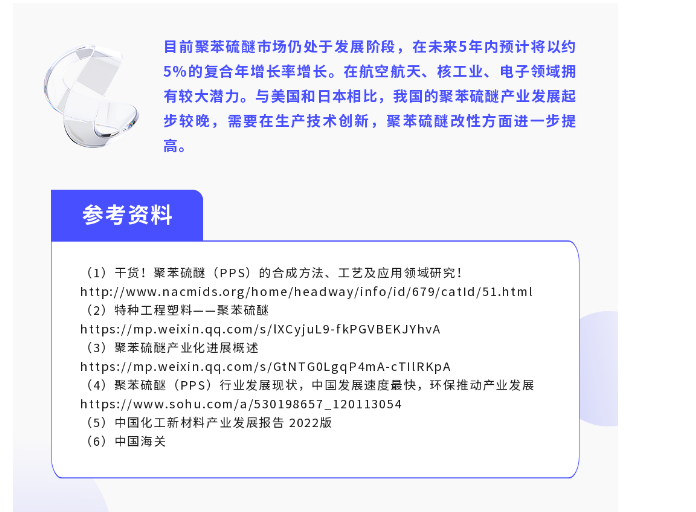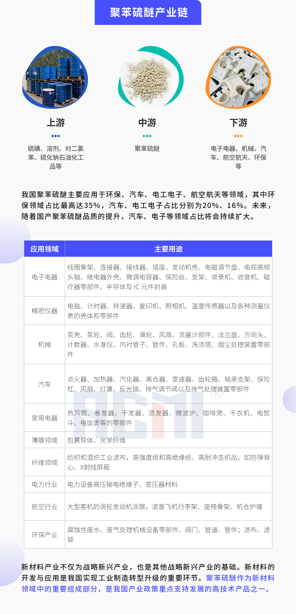 聚苯硫醚(PPS)是特种工程塑料第一大品种,也是八大宇航材料之一,是国家大力支持的一种战略新型材料,广泛应用于环保、汽车、电子、航空等行业。